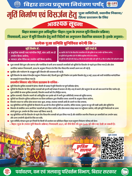 महत्वपूर्ण है कि जल (प्रदूषण निवारण एवं नियंत्रण) अधिनियम, 1974 के अनुसार किसी भी प्रवाहमान जल में मूर्ति विसर्जन पर पूर्ण प्रतिबंध है। इस बार सभी मूर्तियों का विसर्जन केवल कृत्रिम तालाबों में ही किया जाएगा। इसके साथ ही केंद्रीय प्रदूषण नियंत्रण पर्षद और ठोस अपशिष्ट प्रबंधन नियमावली 2016 के तहत जैव-विघटनीय सामग्रियों को अलग से एकत्र करने और पर्यावरण अनुकूल विसर्जन सुनिश्चित करने का निर्देश दिया गया है।