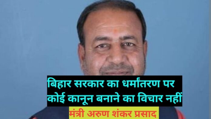 बिहार सरकार का धर्मांतरण पर कोई कानून बनाने का विचार नहीं – मंत्री अरुण शंकर प्रसाद