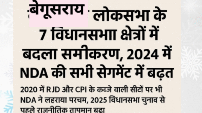विपक्ष के लिए चेतावनी: RJD और CPI के पारंपरिक गढ़ों — खासकर तेघड़ा, बखरी, चेरिया-बरियारपुर और साहेबपुर कमाल — में भी NDA की पैठ 2024 में साफ दिखी है।