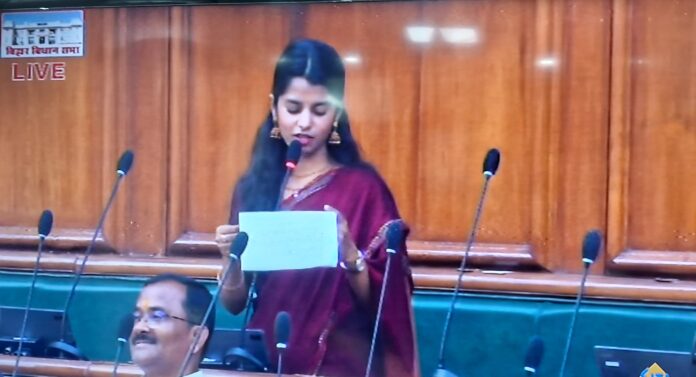 दरभंगा की अलीनगर विधानसभा सीट से पहली बार में ही जीतने वाली सुप्रसिद्ध लोकगायिका मैथिली ठाकुर ने बिहार विधानसभा में पहली बार अपनी बात रखी।