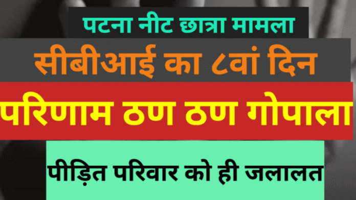 पटना नीट छात्रा बलात्कार एवं हत्या की घटना के लगभग डेढ़ महीने का समय बीत गया है। स्थानीय पुलिस, फिर SIT और अब गत 12 फरवरी से इस मामले की जांच CBI कर रही है।
