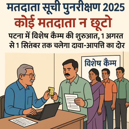 विधानसभा चुनाव की तैयारी के तहत मतदाता सूची के विशेष गहन पुनरीक्षण अभियान 2025 की शुरुआत पटना जिले में मिशन मोड में हो चुकी है। जिला निर्वाचन पदाधिकारी-सह-जिलाधिकारी डॉ. त्यागराजन एस.एम. ने शनिवार को अभियान की प्रगति की समीक्षा की और सभी निर्वाचक निबंधन पदाधिकारियों (EROs) को विशेष कैम्पों का सफल संचालन सुनिश्चित करने का निर्देश दिया।