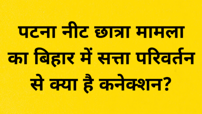 नीतीश कुमार के राज्यसभा की सदस्यता के आवेदन के एक दिन पहले यानी 4 मार्च को इस मामले में एकमात्र गिरफ्तार आरोपी मनीष रंजन की जमानत रद्द होती है और बिहार में भाजपा सरकार बनने के दूसरे दिन (16 अप्रैल)को ही मनीष रंजन को जमानत मिल जाती है । ऐसे में यह आम जन में सवाल उठना लाजिमी है कि कहीं इस पूरे मामले में पटना नीट छात्रा मामले में और बिहार में हुए सत्ता परिवर्तन में कोई कनेक्शन तो नहीं है?